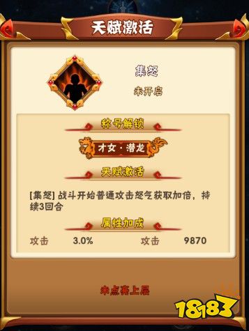 自带单体振奋,才女的转职天赋可以点出集怒,满足4回合3合击的触发的条件: