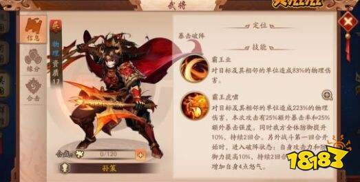 孙策绝对是吴国的核心武将,刚进入开场就能大幅度提升暴击率和暴击伤害。最关键是开场就能释放大招,如此王炸的武将能够迅速让敌方减员。不过他的运气不太好,整个吴国的节奏都偏慢,就算孙策开场打出优势,很快2回合后也会面临尴尬。因为孙策的破阵状态只能持续两个回合,打不死人就要面临成为白班武将的尴尬。