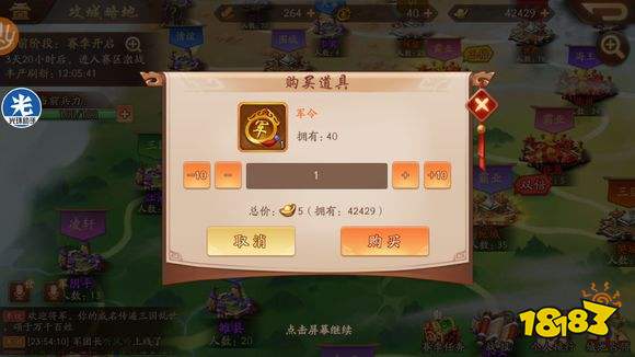 占领城池后,要做的就是防止其他军团的人来你们的城池,如果有人来你们城池,会少一个独占buff加成,少很多元宝,所以我们可以消耗军令来赶走它们,如果你的城池是丰产城池(就是双倍或三倍元宝城池),军令消耗是减半的,假如在非丰产城池打一次别的玩家消耗两个军令,在丰产城池就是消耗一个军令。我们点开头像还可以看到我们军令,粮食啥时候可以恢复满。