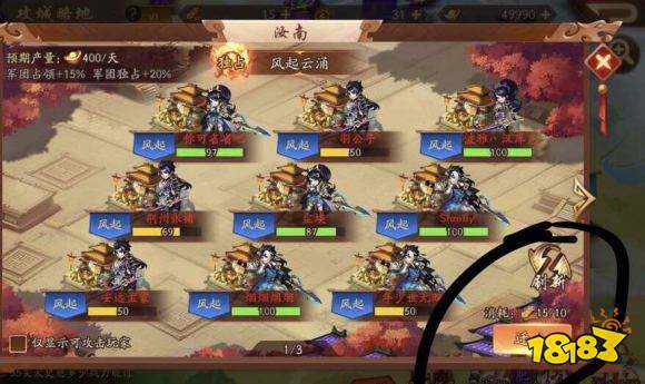 最后,每次上线记得点击收取你们城池上方产出的元宝,提醒一下大家,如果你被打出城了,你之前赚的元宝还在呢。如果策划可以看到这个帖子的话,我有四个小建议关于这个攻城略地:1.增加在基地玩家的粮草恢复速度,以便于更快的去占领城池,减少损失。2.每天军令购买价格随着购买次数递增,这样可以限制下大佬在城战中起的作用。3. 每天双倍和三倍元宝城池数量多增加几座,给平民玩家一点福利吧。毕竟有时候看到一些同样的平民混进大佬军团,每赛季多拿几万元宝心里就觉得很不平衡。4.打架的时候每打一次至少掉一点兵力,这样的话就算是大佬占了城池,其他军团靠着人多力量大也可以跟大佬抗衡,不至于绝望无助想弃坑。