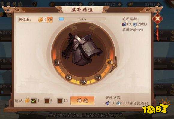说下军团里那个铜像铸造,很多人不知道有小技巧,都是点进去直接铸造,大多数情况下都是一个铸造石加1个经验。你点进去后会发现有个箭头一直在摇摆,下面还有1、3、5、3、1对应的数字,这的意思就是你铸造的时候停在什么位置,铸造经验就会加几,掌握规律后你就可以每次都加5了。快去分享给你军团里的小伙伴吧。