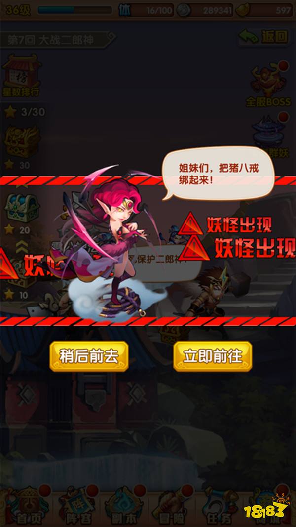 在攻打主线副本任何一个关卡时,都有一定几率触发群妖事件,召唤出群妖BOSS。这时,可以到“冒险”->“围剿群妖”界面进行攻打。