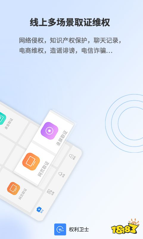 权利卫士是联合信任开发的一款具有现场取证、互联网线上取证功能的电子取证工具,权利卫士通过拍照取证、录像取证、录音取证、网页取证、录屏取证功能对正在发生的事实进行取证并立即进行可信时间戳固化,生成不可否认和篡改的电子证据。