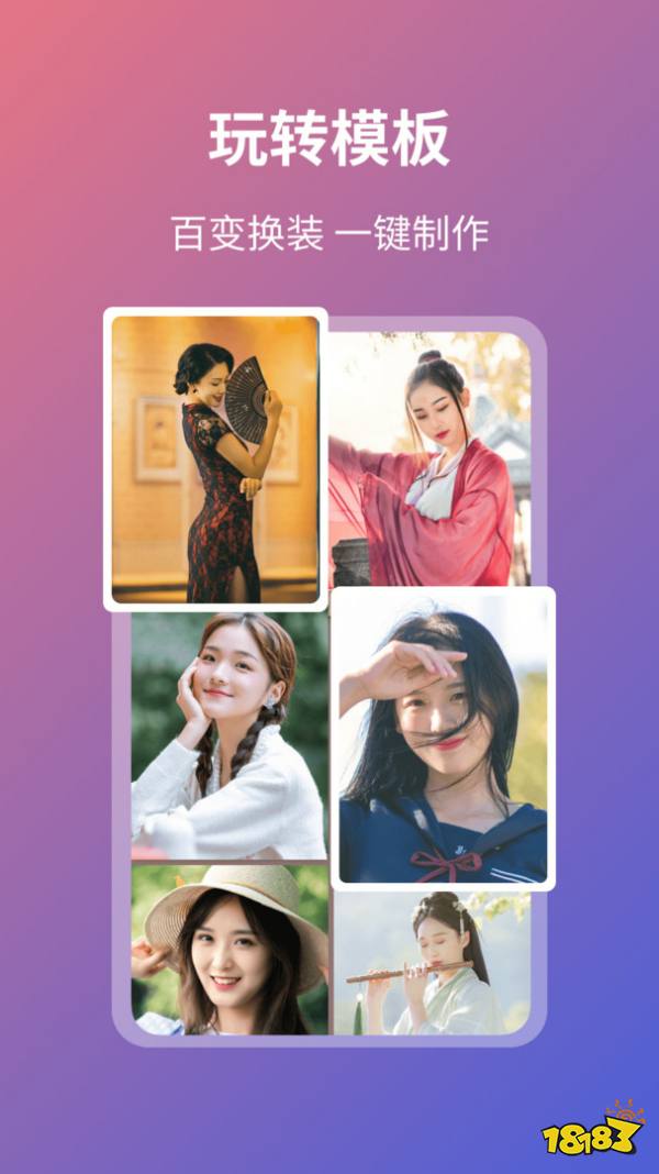 一键换脸是一款全新的AI智能换脸app,你只需要上传1张照片,就可以通过人脸融合技术一键合成古风汉服、青春风华、高冷女神、肌肉型男等热门装扮视频动态效果。