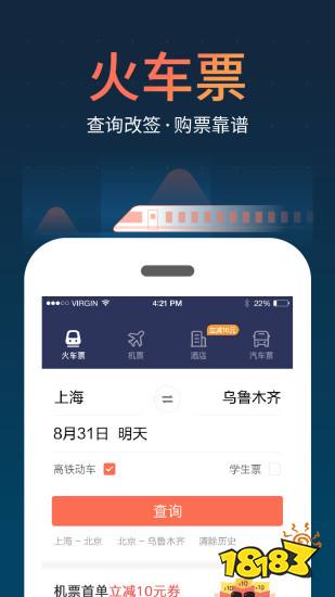 最佳抢票神器,可以购买高铁票。支持在线选座、火车时刻表查询,火车票订单查询、退票改签都能搞定,官方票源,值得信赖。让您随时随地购买火车票、机票、汽车票、酒店。