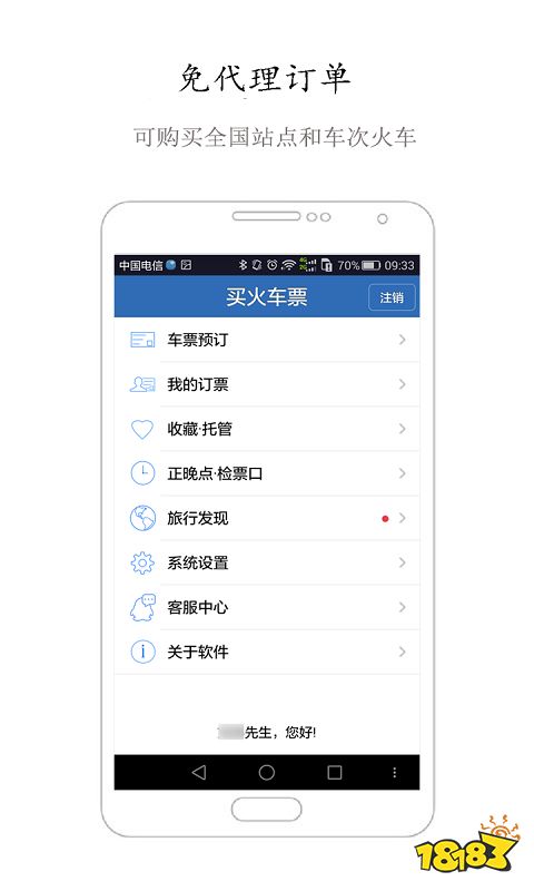 随时随地购买火车票,支持学生票、儿童票、残军票