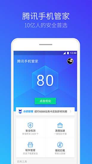 腾讯手机管家专注手机骚扰拦截,动态守护手机安全,深度清理微信、QQ缓存,让手机体积减半,拒绝卡慢。更有海量游戏礼包,腾讯大王卡流量特权等你。