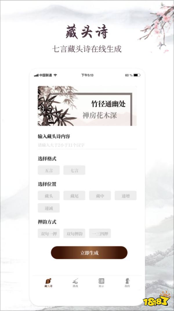 藏头诗生成器:为你写诗,任意当诗人。你也可以成为诗人,你也可以成为诗仙,小手一点,立马生成属于你自己的古体诗和现代诗。你来,或者不来,诗就在这里;你用,或者不用,我都在这里。