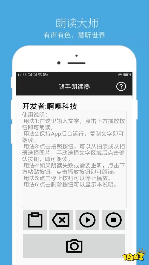 软件快速识别图片的文字,迅速朗读出来,识别中英文,一键拍照朗读即可,解答难题,分辨出中英文单词,快速识别智能区域,自动过滤多余的信息等。