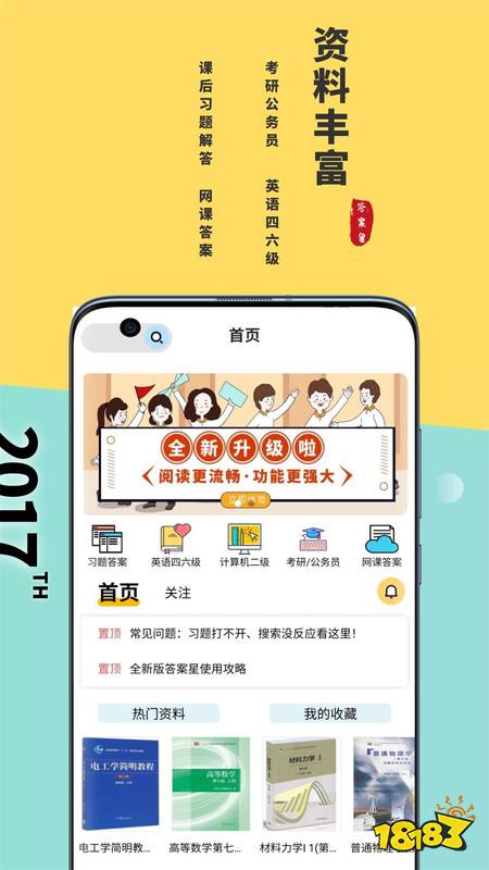 答案星是专门针对在校大学生开发的一款学习app,具有有以下特点: 【1】资料丰富 大学日常所需的课后习题答案解析、英语四六级考试资料、考研资料、事业单位公务员考试资料等等你都可以在这里找到。