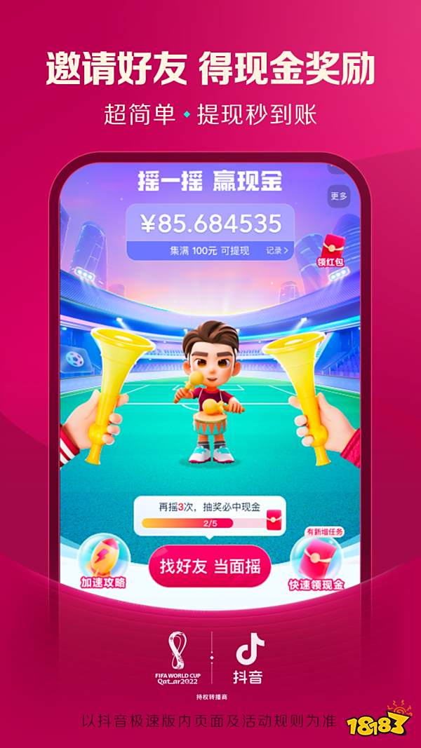 上抖音极速版,看世界杯直播 全场次免费超高清 ,和朋友一起“边看边聊” 抖音是记录美好生活,帮助用户表达自我的原创短视频分享App。