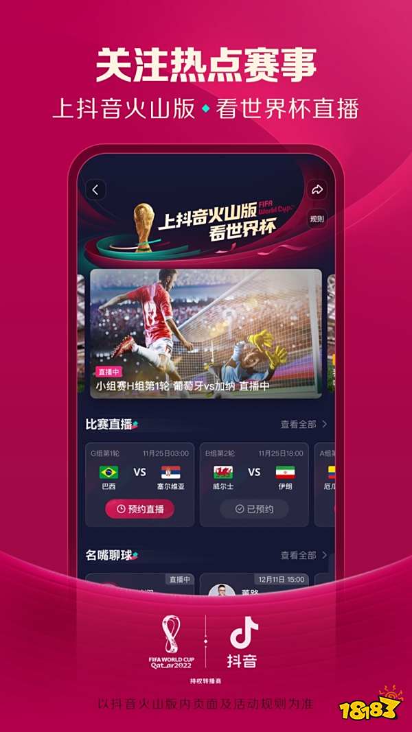 上抖音火山版,看世界杯直播 全场次、超高清!关注赛事热点和足球大咖解读,一起来看世界杯直播! 抖音火山版—原火山小视频 在品牌升级后的火山,交到更多的朋友,看见更大的世界。