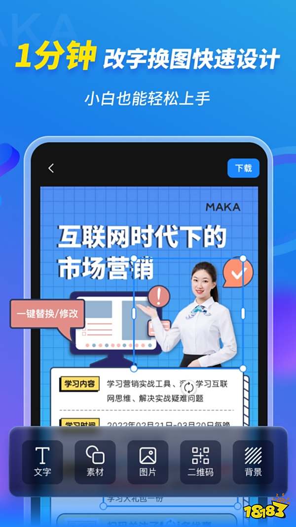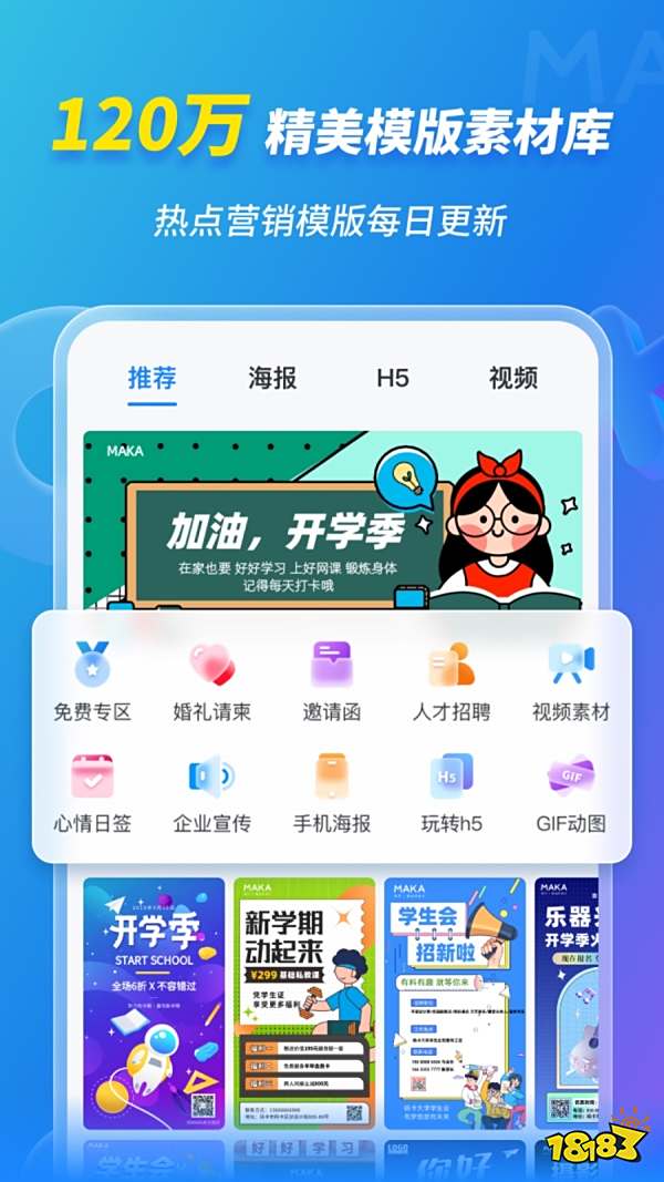 【MAKA,让设计更简单,更有趣!】 MAKA|做出好设计。一款专为企业和个人量身打造的H5、海报、视频、GIF、微商电商素材的集创意、设计、营销、推广的一款工具。
