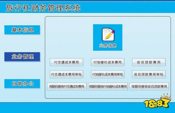 旅行社财务管理系统是一款功能强大,专业实用的财务管理软件,软件拥有基本信息、业务管理、日常办公三大模块,信息录入 详细,查询功能强大,是您不可多得的优秀助手。