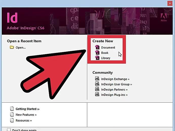 1、 启动 InDesign 。通过单击“ 创建新”窗口中的“文档”图标,然后指定新文档的设置来创建新文档。