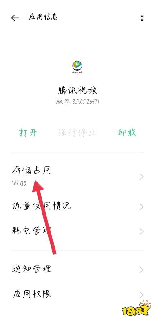 4、接着打开腾讯视频,点击页面的“存储占用”。