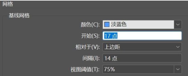 1.InDesign基础网格的间隔大小设定很有讲究的,必须根据我们布局的字体大小设定网格的间隔,使其更符合布局要求.ctrl+k键打开优先级,选择中的网格选项,找到基础网格选项.