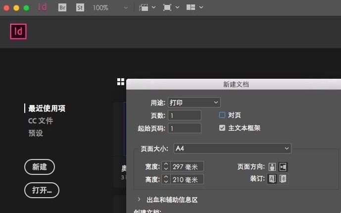 1、打开ID软件,新建一个文档