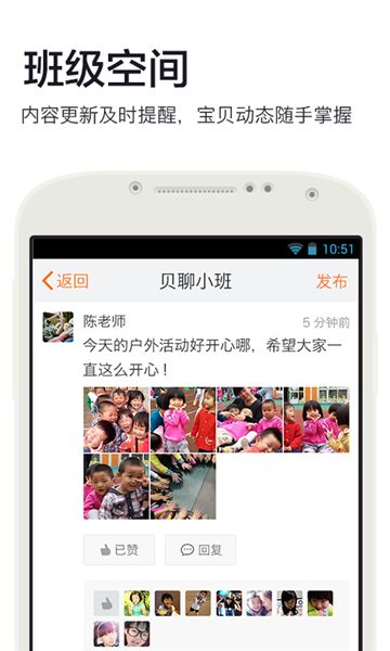 班级圈:同班级的老师和家长组成的圈子,秀班级、晒孩子、分享孩子课堂内外的生活;