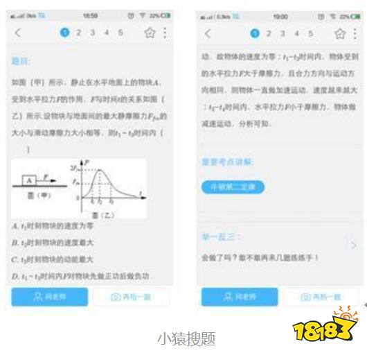 小猿搜题:整体界面简洁,搜题功能明确,没有其余复杂的干扰功能,但其对于搜索到的题目详情来说,解析过于简单,没有知识点讲解、老师答疑、和知识点的巩固提高,不利于学生学习知识,很容易沦为仅仅获得答案的工具,并且其对于无法搜到题目的解决方案较少。