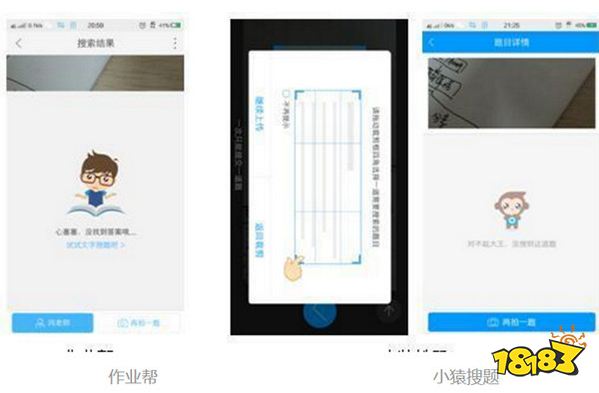 作业帮:整体界面简洁,操作方便,题目详情较为丰富,并且对于无法搜索到的题目的解决方案较多,便于学生对题目进行深入理解以及知识的运用和提高,但其搜索记录过于混乱,不易找到题目。