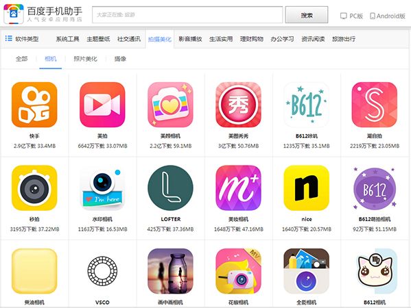 以下数据以百度手机助手拍摄美化这一栏目的排名数据为参考,特此说明!