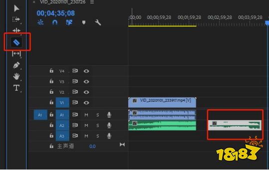 5.如果音乐时间太长,可以用【剃刀工具】裁掉一截,当然你可以选择具体裁哪一段。