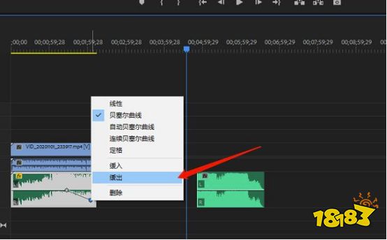7.可以在锚点处鼠标右键,选择缓入缓出,这样让音乐可以更柔和一些结束,让人听起来更舒服。