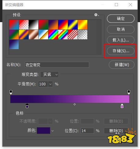点击渐变编辑器里的“储存”。