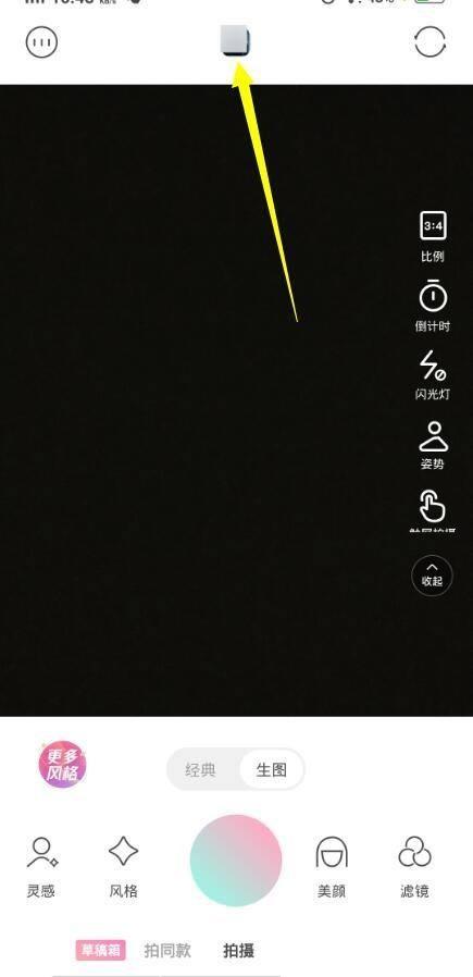 1、首先打开轻颜相机APP,在拍摄页面上方,点击打开照片;