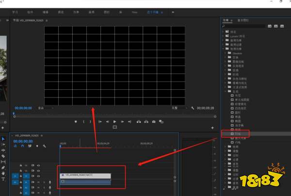 选择效果的视频效果中的“网格”效果,将网格效果给视频轨道的视频素材施加。