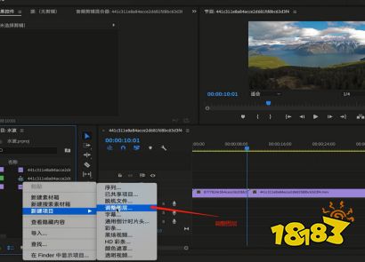 3、在【项目】面板中点击鼠标右键,在出现的菜单中依次点击【新建项目-调整图层】。