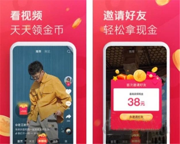 3、邀请好友:在抖音极速版中,成功邀请好友注册,就能获得相对应的金币和现金奖励.最高邀请一个好友可得38元的现金奖励,邀请无上限,非常适合好友多的用户.