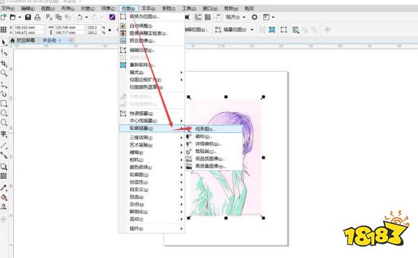 首先打开CorelDRAW,18183小编这里的漫画是从网络上任意下载的,下载完成后,接下来就是将漫画导入CorelDRAW中,然后点击菜单栏“位图”-“轮廓描摹”-“线条图”,打开设置面板。大家可以看看效果图。