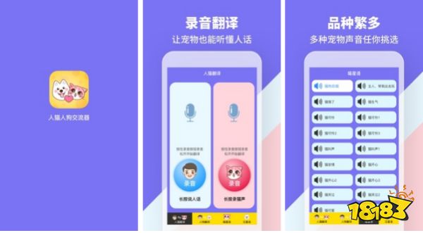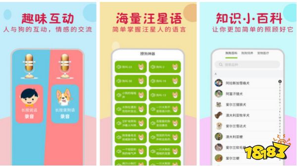 是一款超级有趣的人狗互动专属软件,可以学到很多知识百科,强大的人狗翻译功能,让你读动物的声音,是宠物主人必备的软件。录音翻译,趣味互动;海量狗语,掌握王兴仁的语言;知识百科,更好的呵护萌宠;独家档案,记录萌宠成长全过程