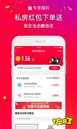 1. 新人大礼:新人专享188元大礼包。 2. 专享特权:每日多款商品享受手机专享价。 3. 闪电到货:211限时达、次日达、极速达、夜间配。三、天猫安卓版