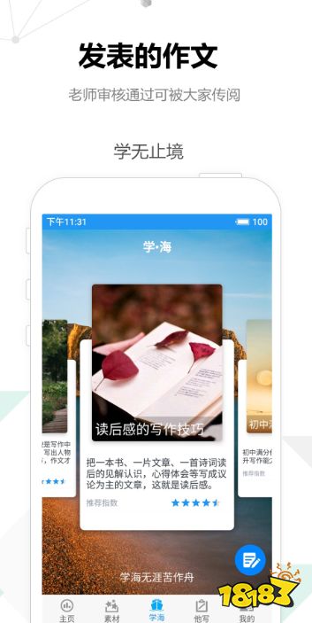 如果是学生的话,可以到app里进行素材查询,也可以将自己的素材进行投稿,根据流量还会有稿费报酬,但app主要都是优秀作文提供,每天都会有更新。