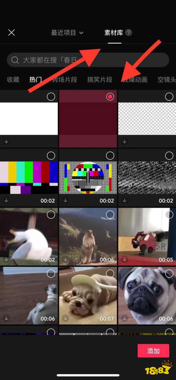 点击新增一个画中画,然后在最上方右边的素材库里找到黑幕素材,点击添加