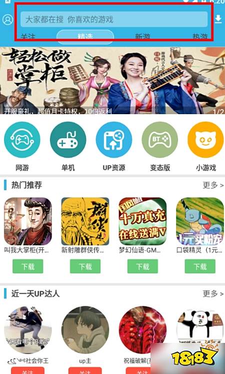 1 在首页,用户可以直接在*上端搜索框输入自己想要下载查找的游戏名称,下载游戏。在页面中间...