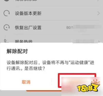 确认解绑的对话框,再次点击确认,确认后,手环就会与手机解除绑定