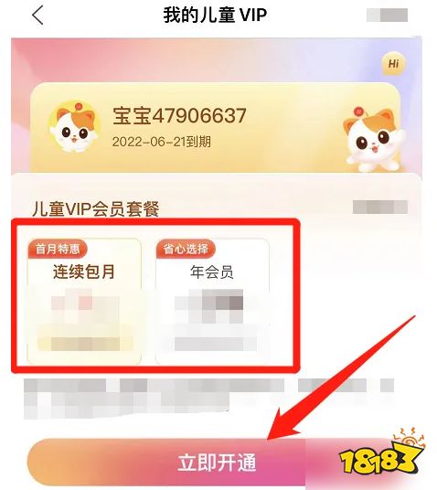 接着在【我的儿童VIP】页面中,选择需要开通的会员时间,再点击【立即开通】按钮即可