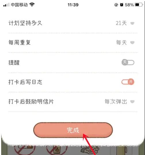 最后弹出界面,设置目标时间和提醒方式,点击完成即可。