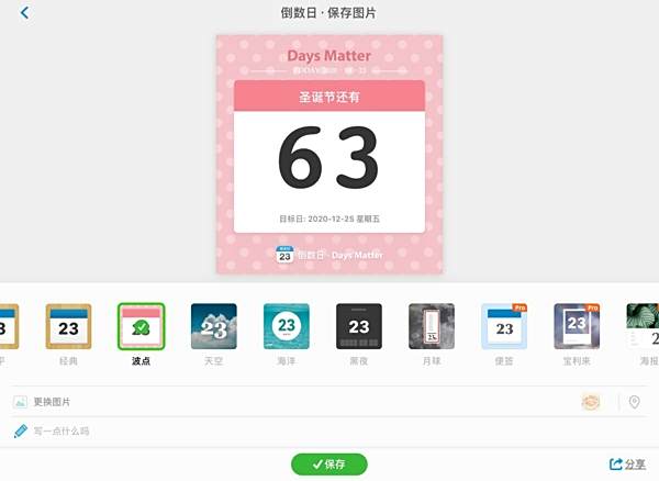 选择一个你喜欢的主题,并进行保存,就能够获得一张与众不同的倒计时了!