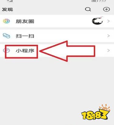 打开微信后,点击下方的【发现】,然后点击【小程序】。