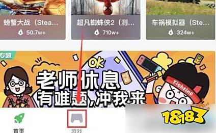 2、点击界面下方的游戏图标。