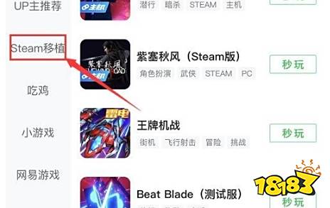 4、选择分类下方标注位置的steam移植。