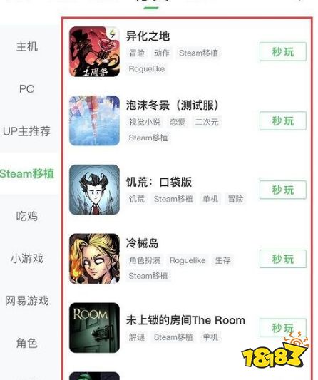 5、选择想要体验的游戏点击秒玩即可。