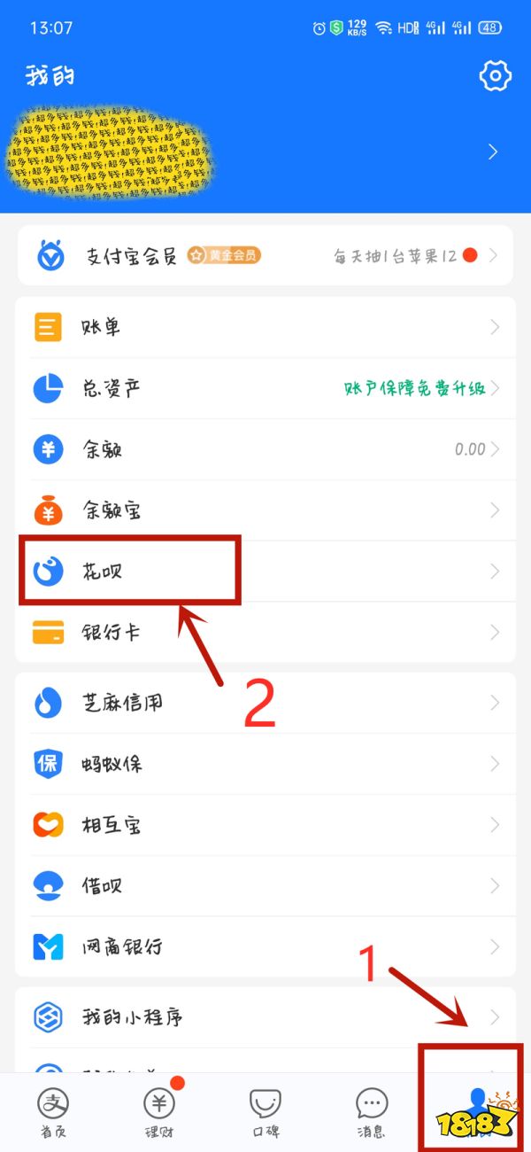 1、打开支付宝app进入首页,然后点击右下角我的。进入以后点击花呗进入;
