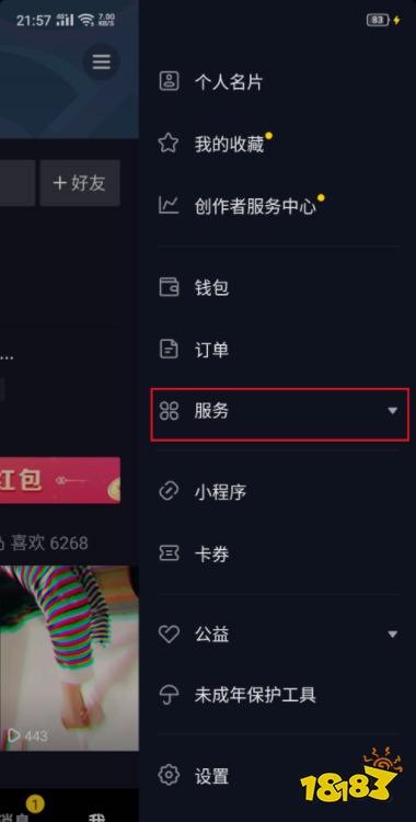 3、在我的界面中,找到右侧的三条杠杠形状的功能菜单,点击进入功能菜单界,点击界面中的“服务”。