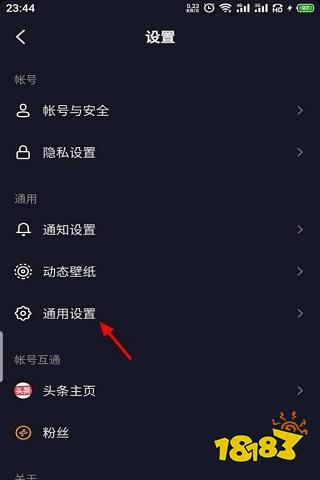 4、进入设置页面,点击“通用设置”,如下图。